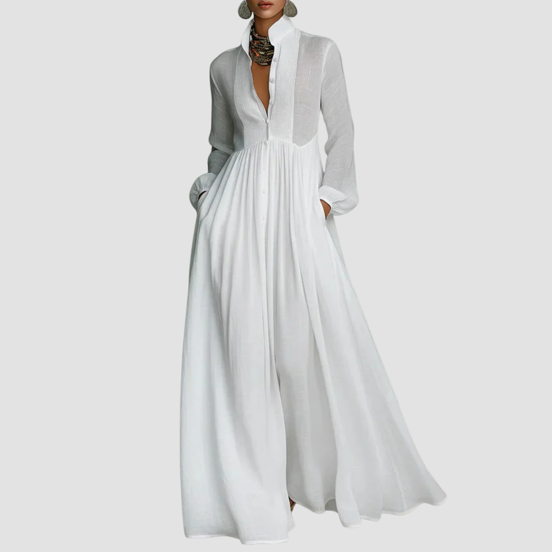 The Freyja Maxi Dress is designed for women who appreciate effortless elegance and graceful movement. With its flowing silhouette, refined button-front detail, and long sleeves, it offers a timeless look that feels light, balanced, and beautifully feminine. Ideal for relaxed sophistication, special moments, or elevated everyday wear, Freyja™ transitions seamlessly through the seasons.