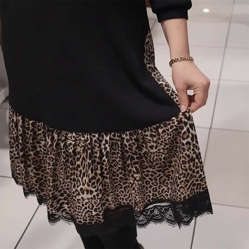 Stylish color-block design that pairs classic black with bold leopard accents for a modern, standout look.